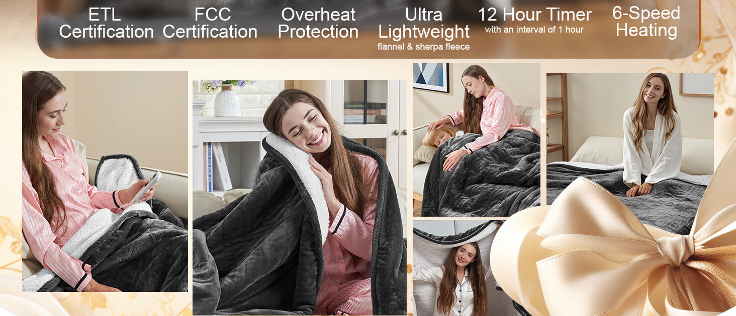 - Easy Control with 12-Hour Timer: Features a simple one-button controller, six heat settings, and a customizable 12-hour timer for all-night comfort.