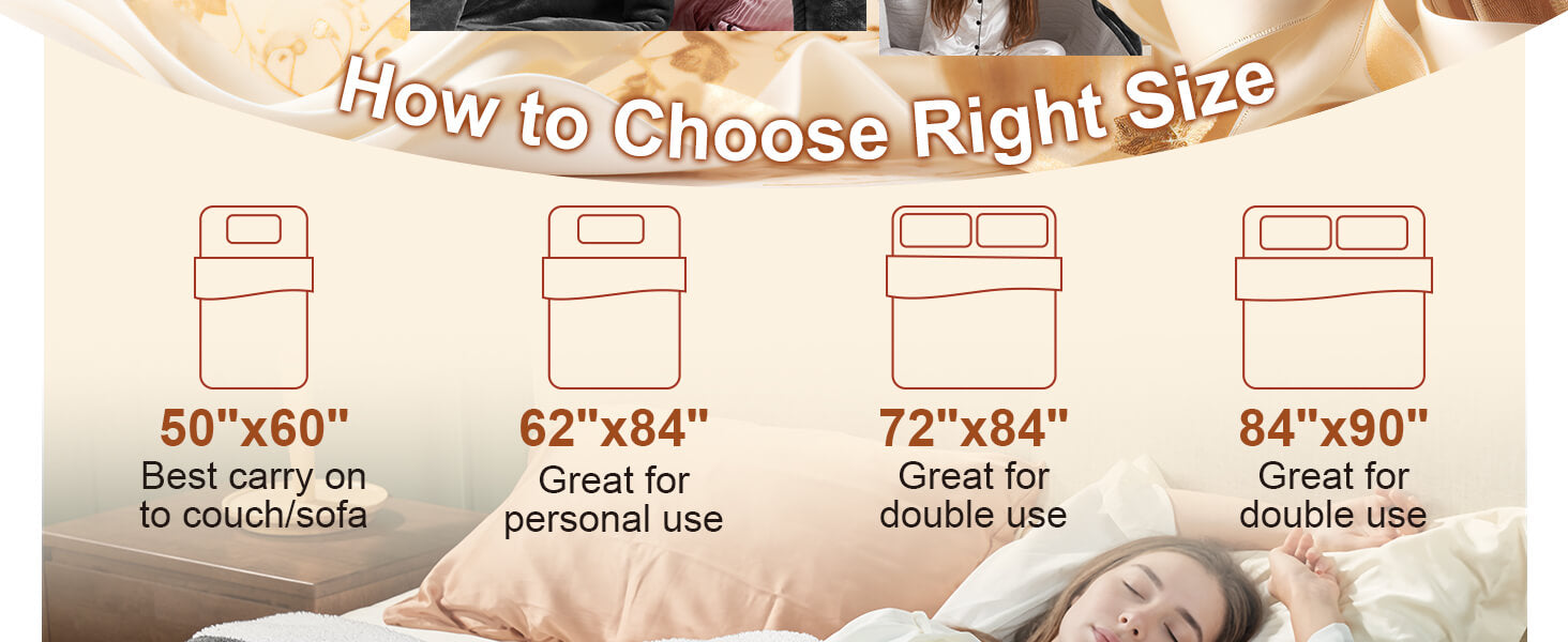 For a bed, select a size that corresponds to your mattress size (Twin, Full, Queen, King). It's often recommended that the blanket be slightly smaller (about 10-20 cm) than the mattress to ensure a proper fit without hanging too far over the edges. For personal throws, consider how much coverage you prefer.