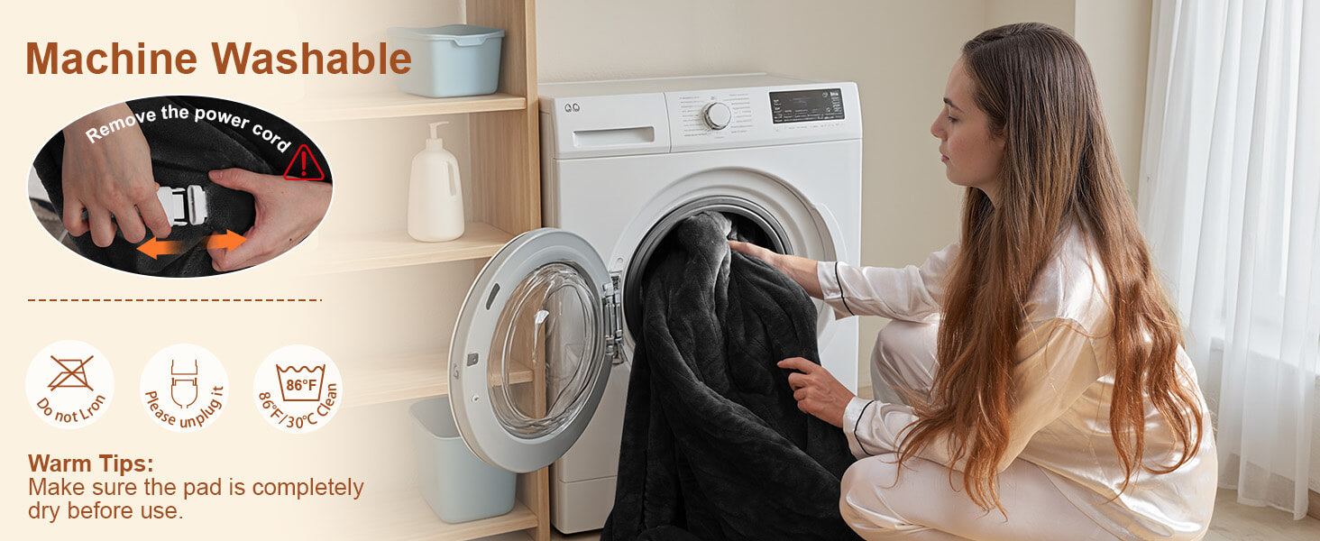 - Machine Washable for Easy Care: Designed with a detachable controller for hassle-free machine washing, supporting gentle cycles and low-heat drying.