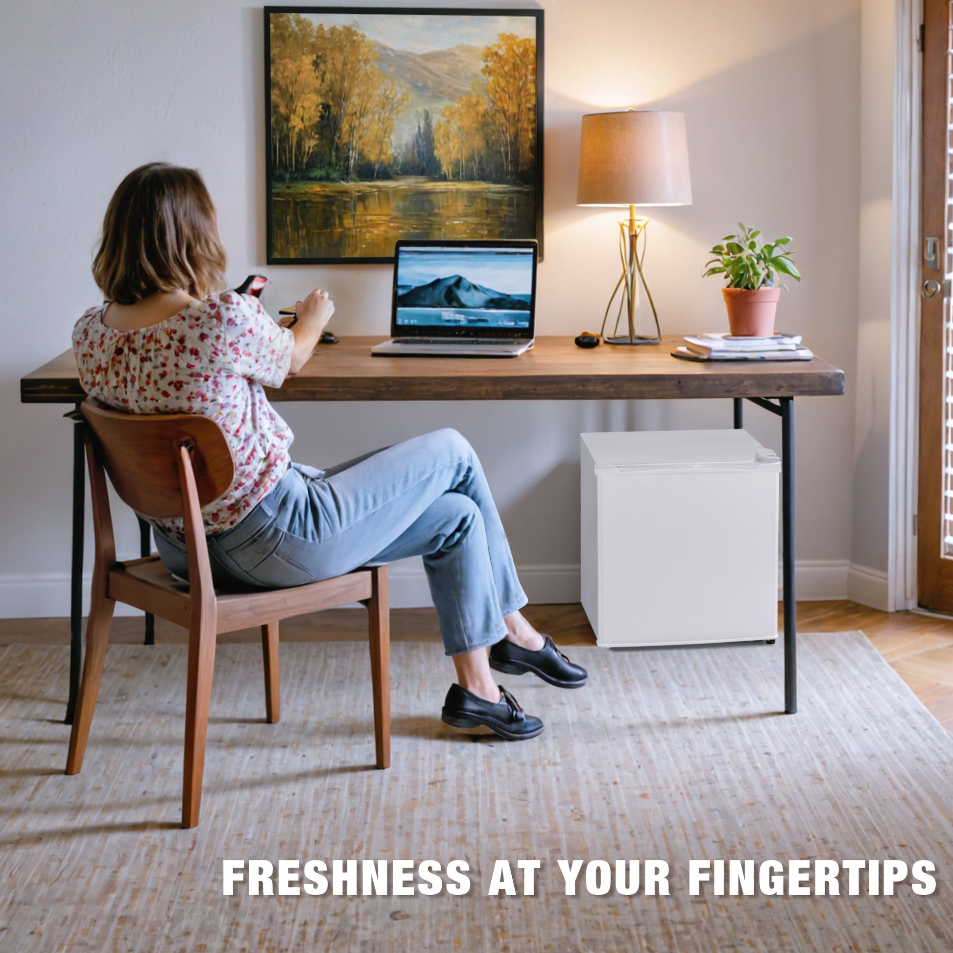 [💦Refrigerator & Freezer Storage ] - Our mini refrigerator comes equipped with a spacious refrigerator storage (1.5 square feet) and a freezer storage (0.2 square feet). Keep your fruits and vegetables fresh or store frozen treats like ice cream for short periods. This versatile feature ensures you have ample space for all your freezing requirements.