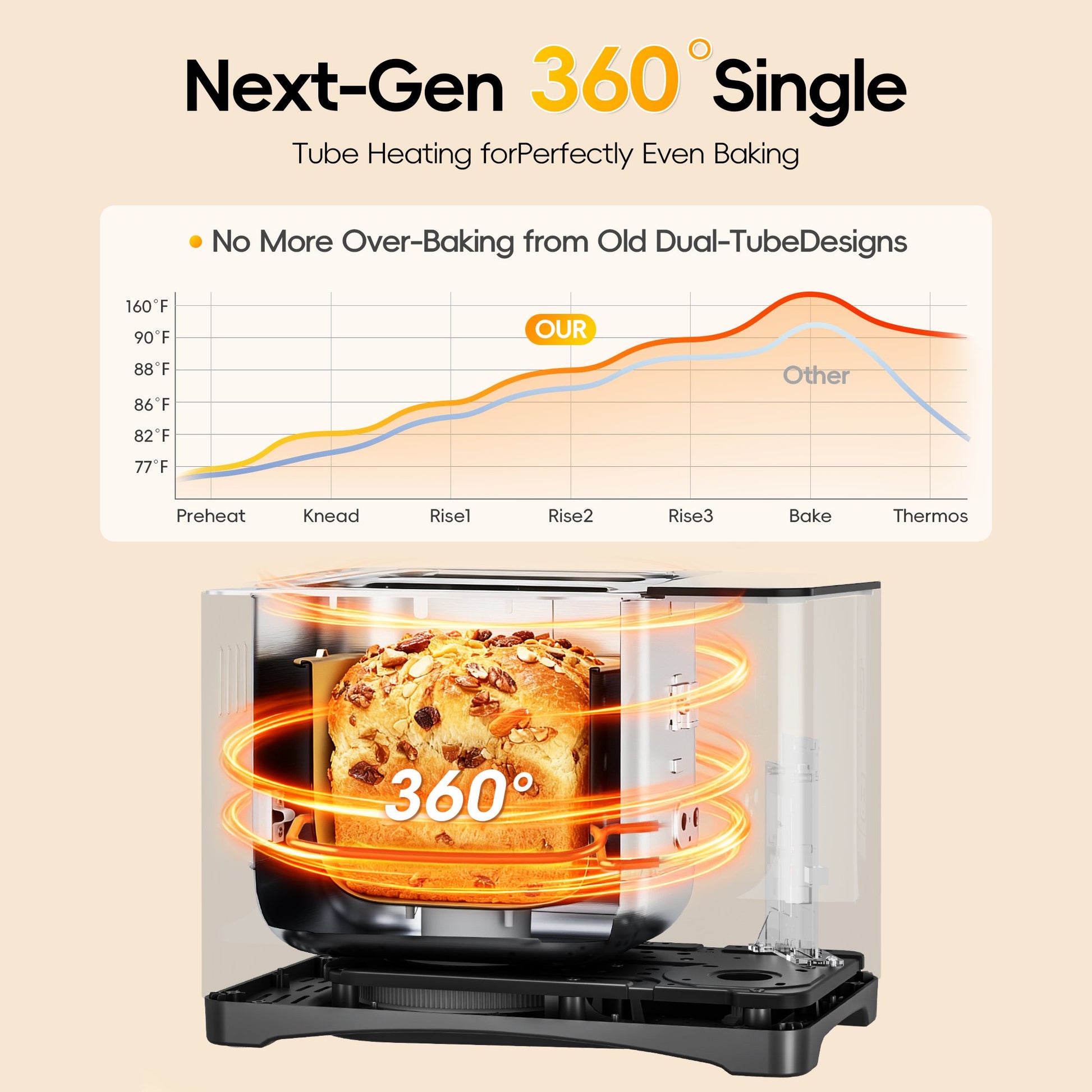 - 🍞[Touch-Sensitive Buttons for Effortless Operation] Modern touch-sensitive controls provide a seamless and sleek user experience. With responsive tactile feedback and a streamlined interface, selecting functions and adjusting settings is effortless—making every baking session simple and satisfying.