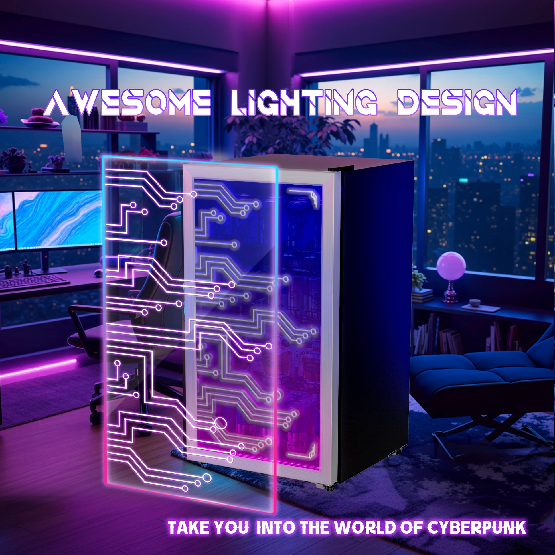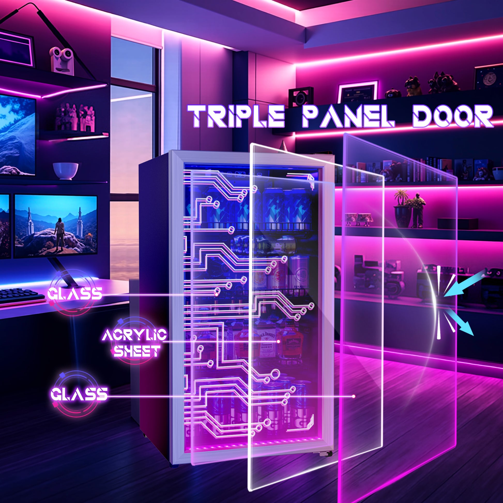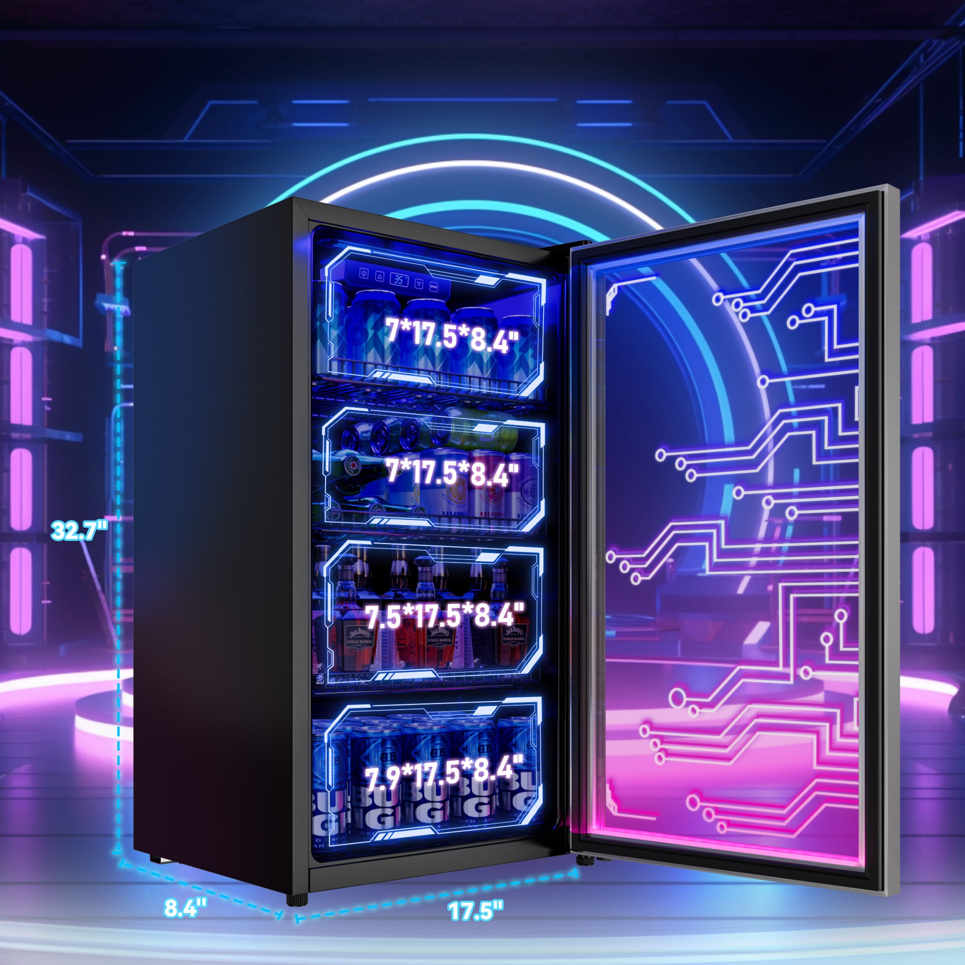 Illuminated Beverage Cooler with LED Lighting, 120-Can Capacity, Adjustable Temperature Control, Freestanding Mini Fridge for Drinks, Energy-Efficient Glass Door Display