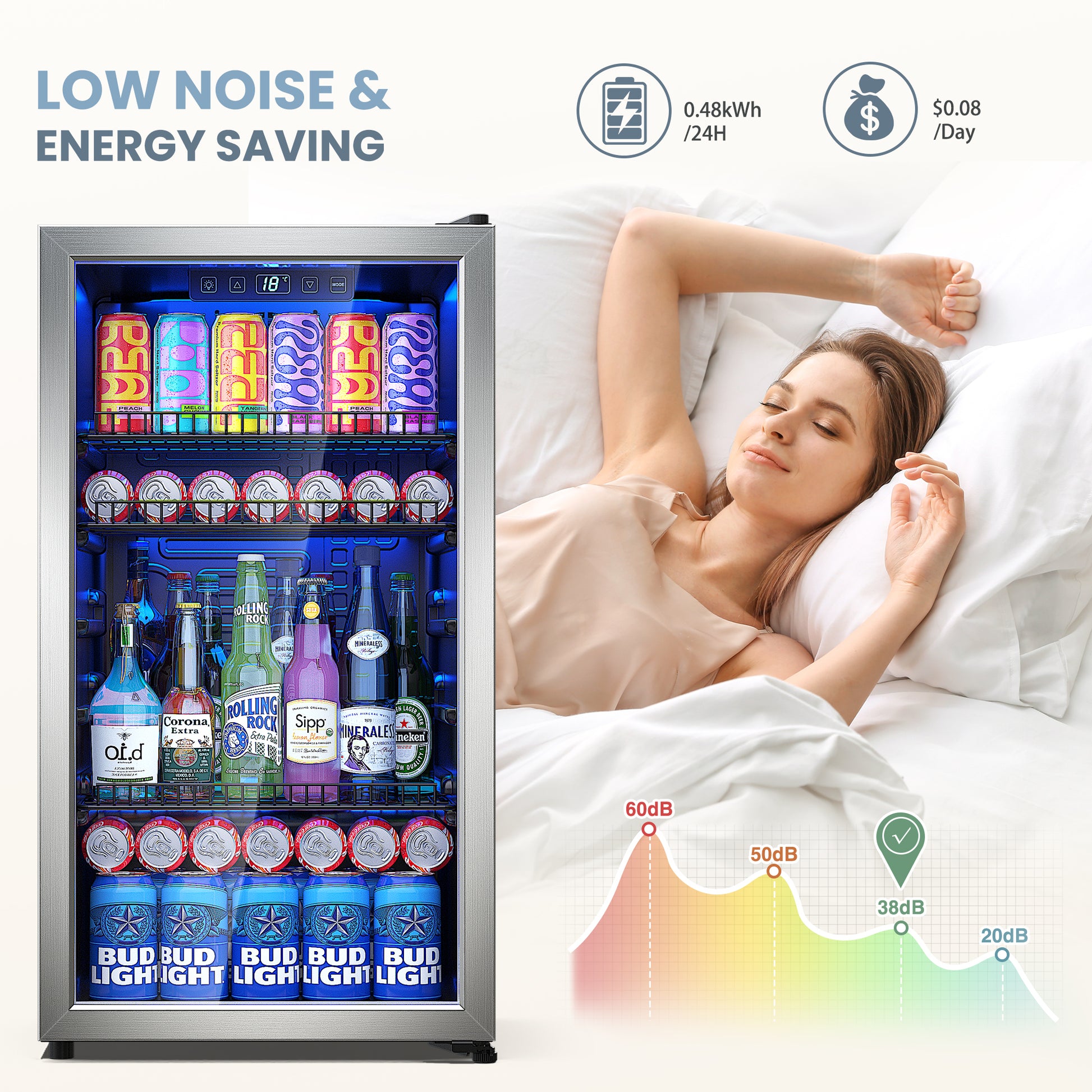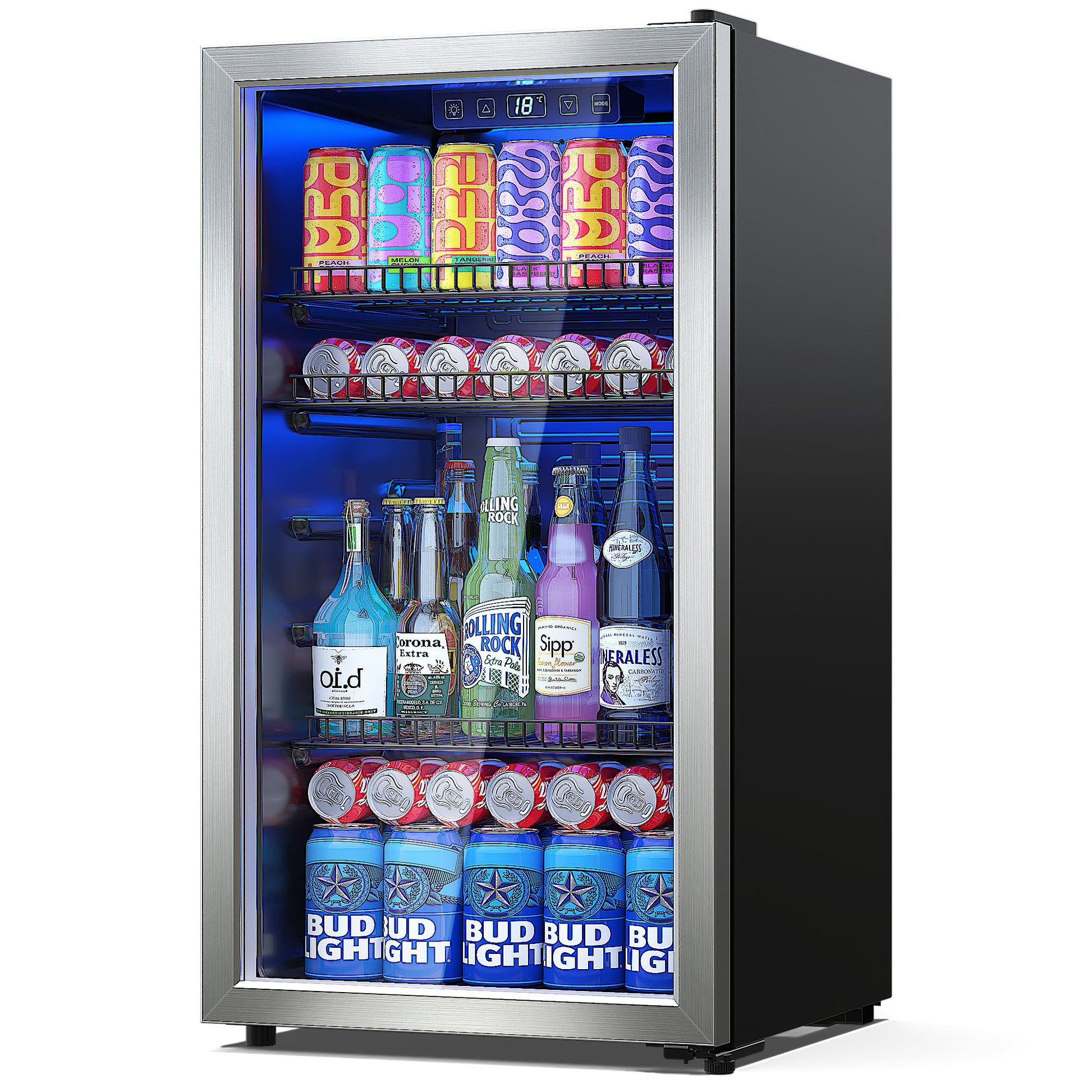 Manastin 120 Can Beverage Refrigerator Cooler 3.2 Cu.ft Mini Fridge with Glass Door & Adjustable Shelves, Perfect for Home, Office or Bar