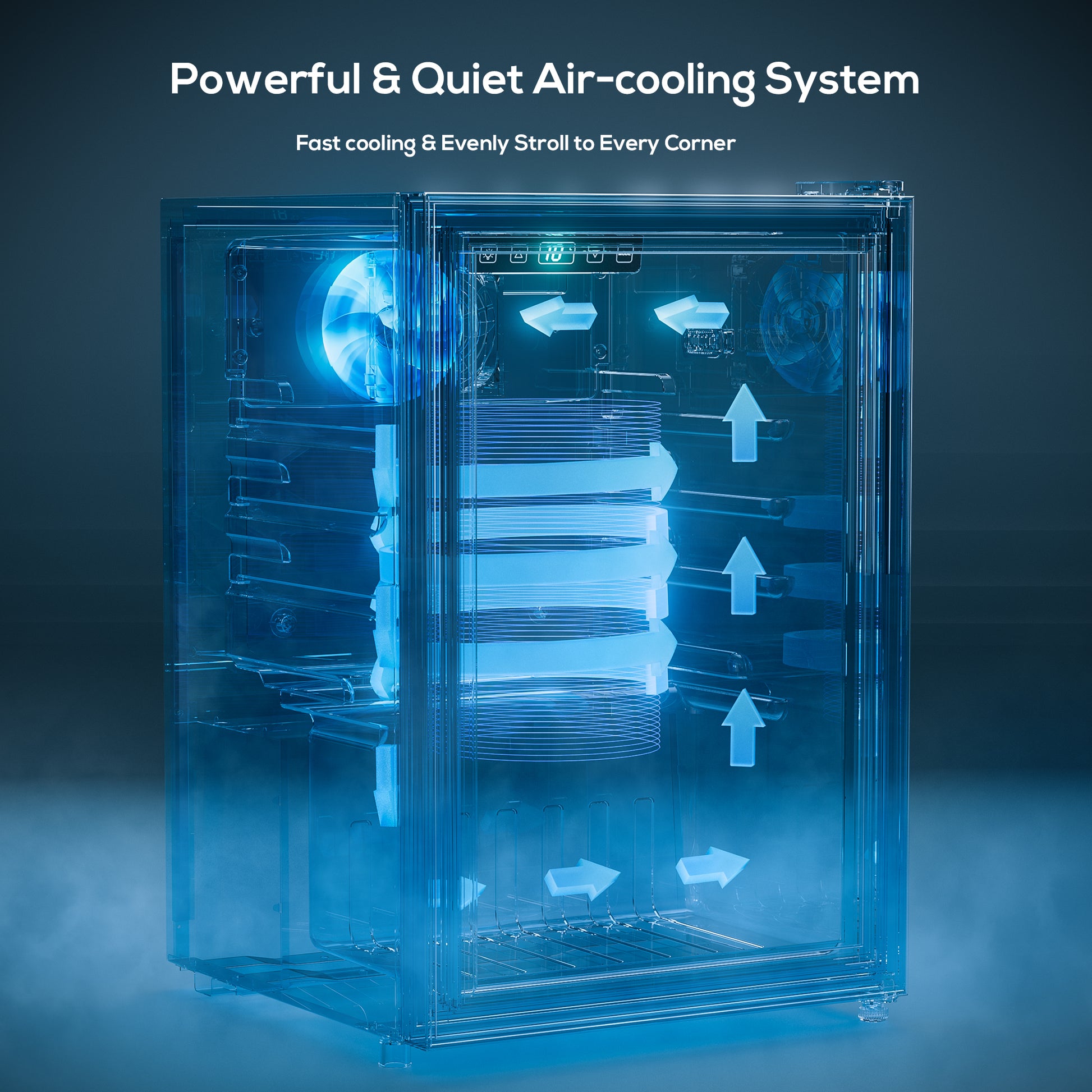 🧊Powerful cooling performance:With an advanced compressor and internal air-cooled system, this mini fridge creates an evenly cooled space by ensuring that air flows throughout the entire beverage center.