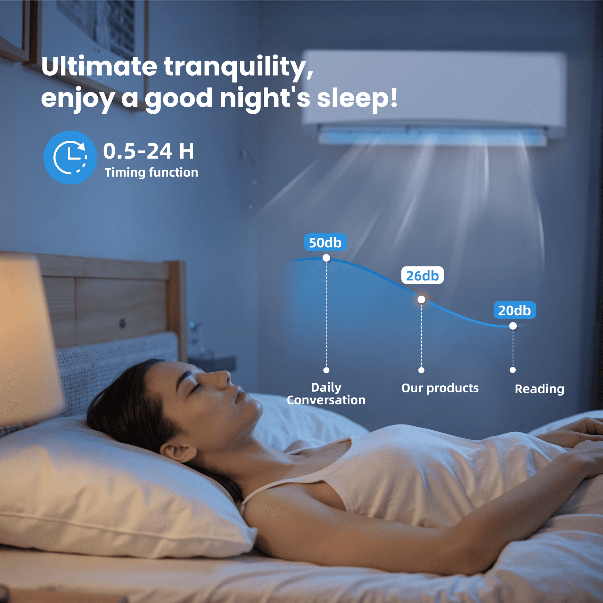 - 💠[Multiple Modes & Functions]: Enjoy versatile climate control with 5 one-touch modes (Cool, Heat, Dry, Fan, Auto) and 4 adjustable fan speeds. Additional smart features include a 24-hour timer, Turbo mode for rapid temperature changes, ECO mode for optimized efficiency, Sleep mode for quiet nighttime operation, and Silent mode for ultra-quiet performance (as low as 26 dB).