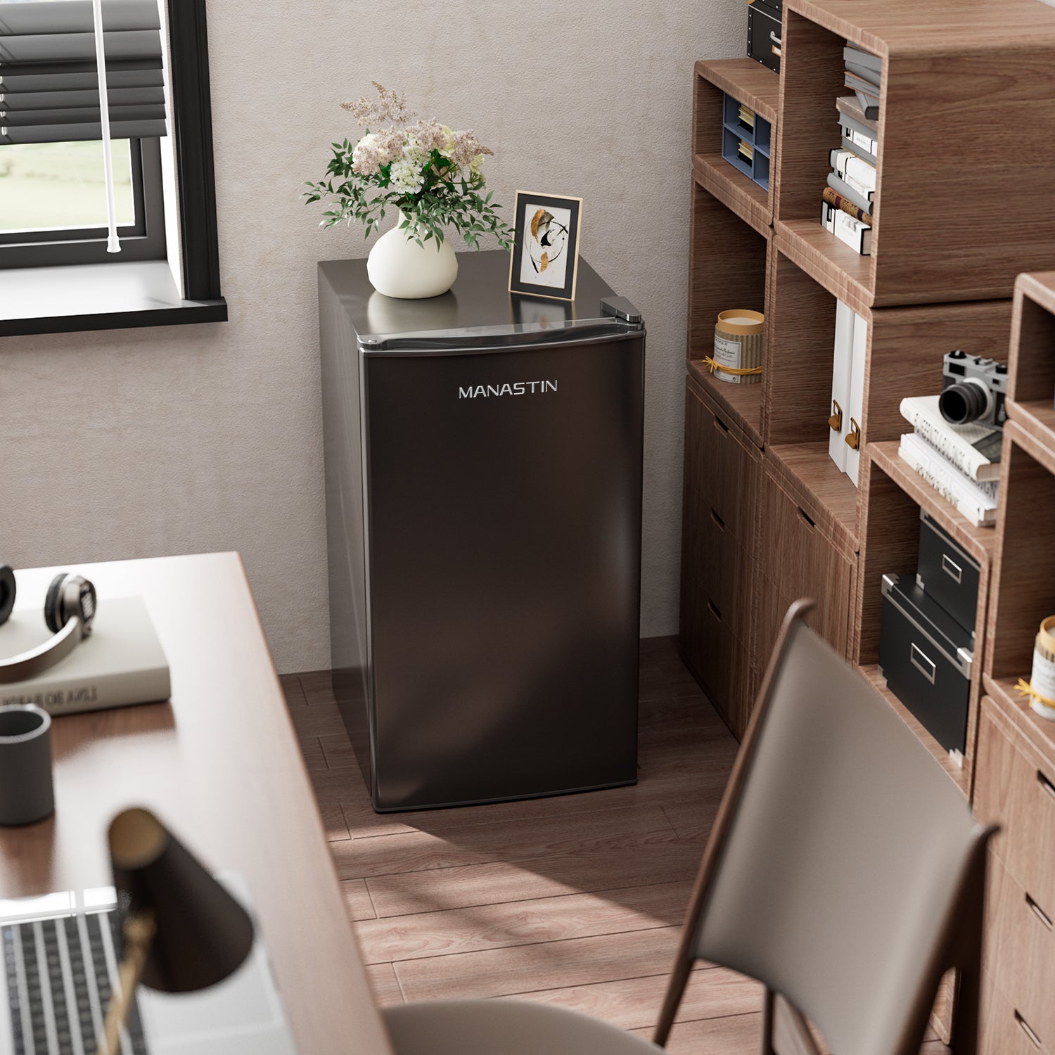 Manastin 3.2 Cu.ft Mini Fridge Energy Saving Compact Refrigerator with Reversible Door, Piano Black