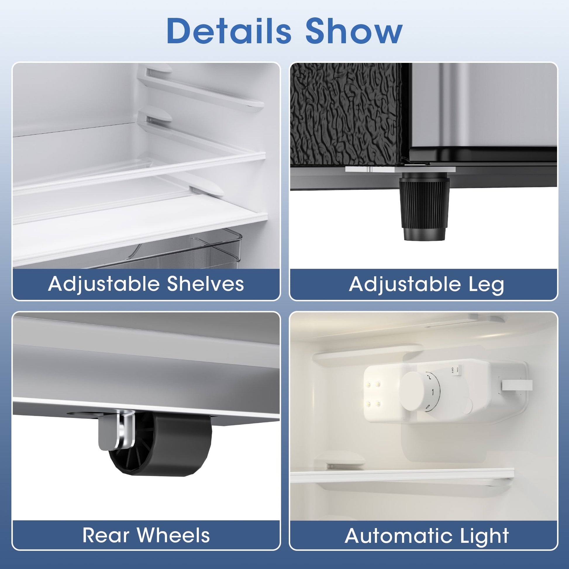 - ??[Precise 7-Speed Temperature Control]: Keep everything perfectly chilled. Adjust cooling from 32°F–50°F in the fridge to a freezer-ready -0.4°F. Ideal setting (#4) preserves drinks, ice cream, produce, and meats for apartments, dorms, or offices.