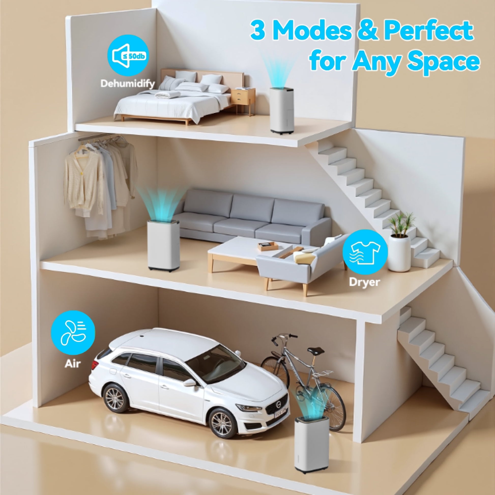 - 🌍[3 Customized Modes]: Tailor performance to your space with specialized modes (Dryer/Air/Normal) to ensure optimal results in bathrooms, bedrooms, or storage rooms.