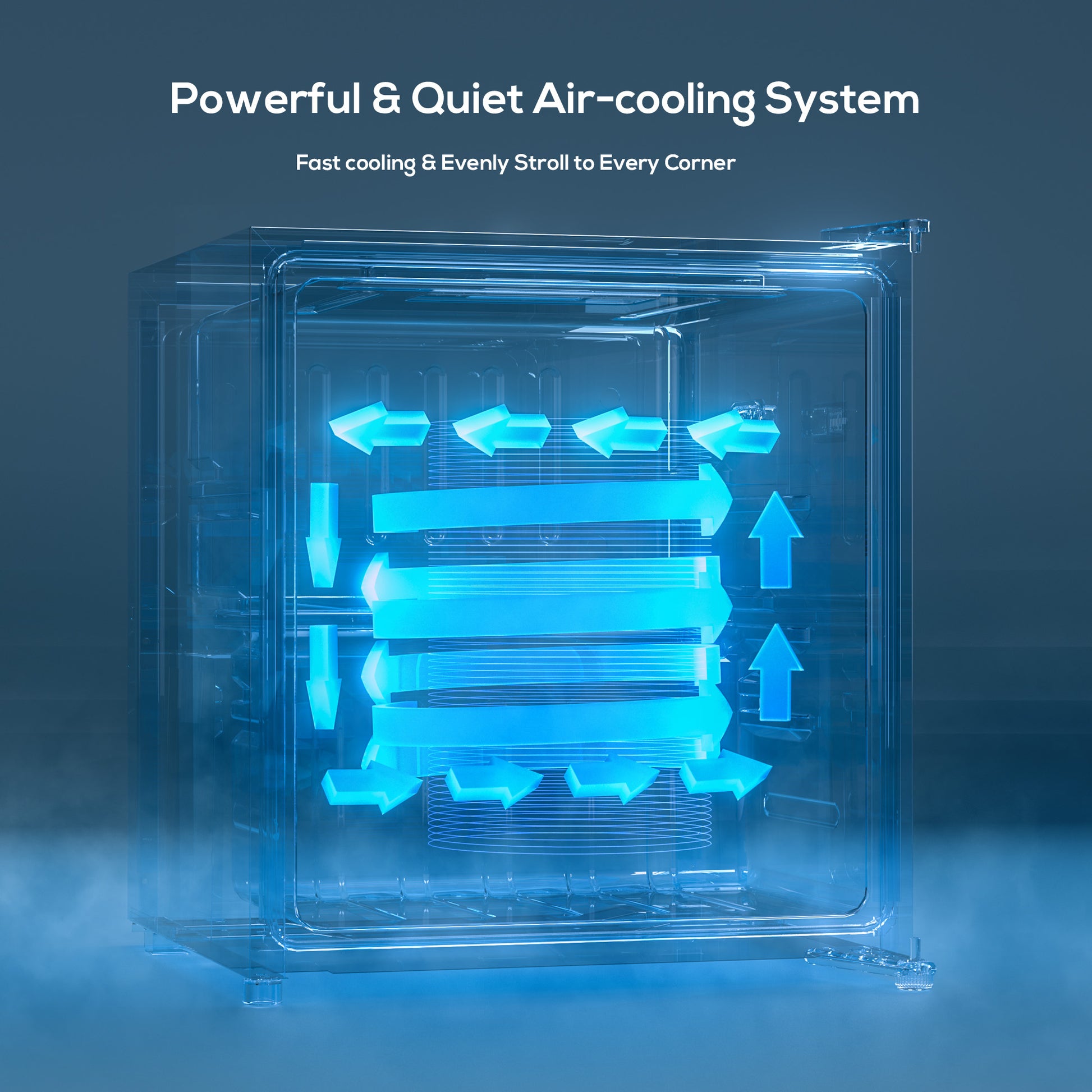 🧊⟨Powerful Cooling Performance⟩ With an advanced compressor and internal air-cooled system, this mini fridge creates an evenly cooled space by ensuring that air flows throughout the entire beverage center.