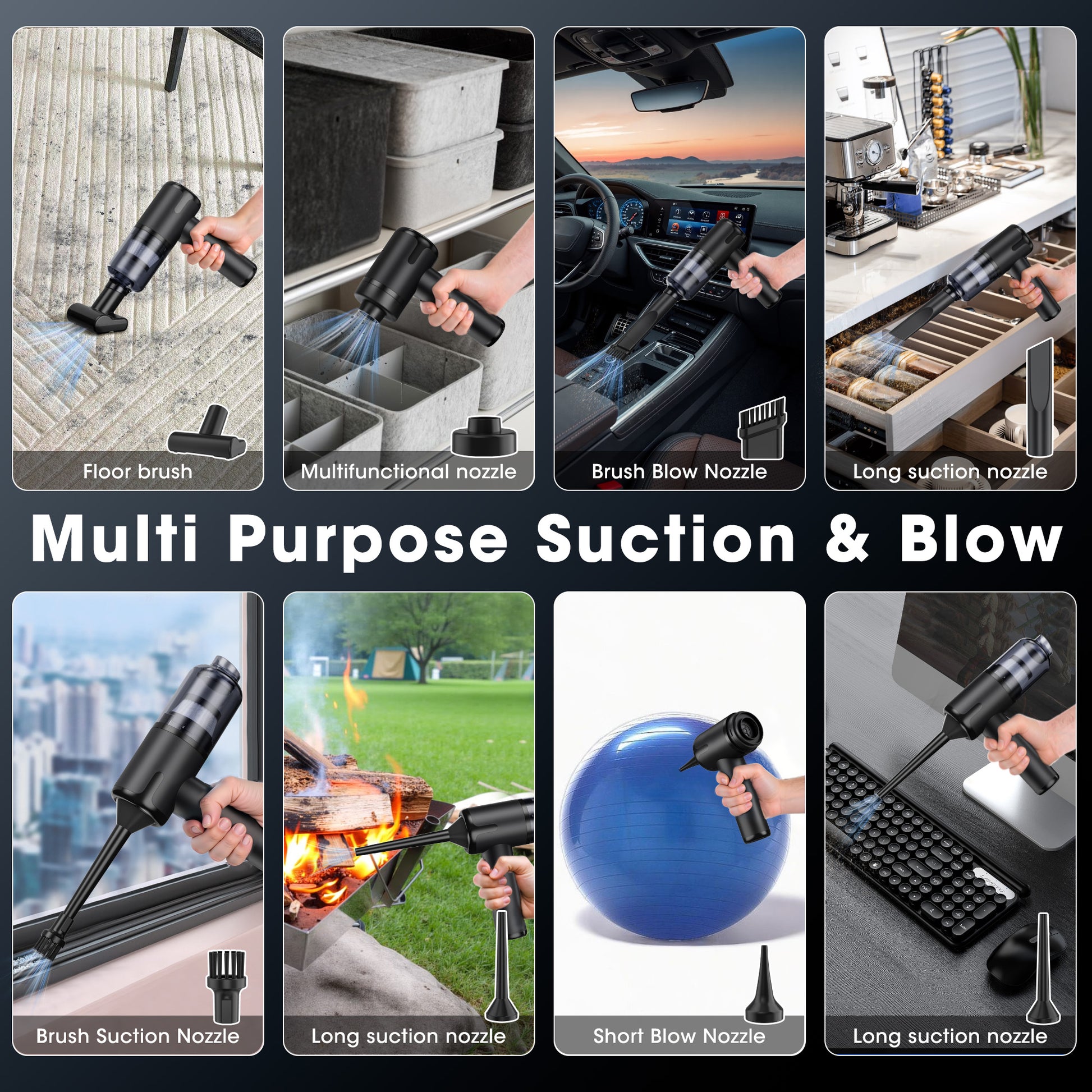 Manastin 8-in-1 Cordless Handheld Vacuum Cleaner - 16,000PA Powerful Suction, 4000mAh Battery, Washable and Reusable