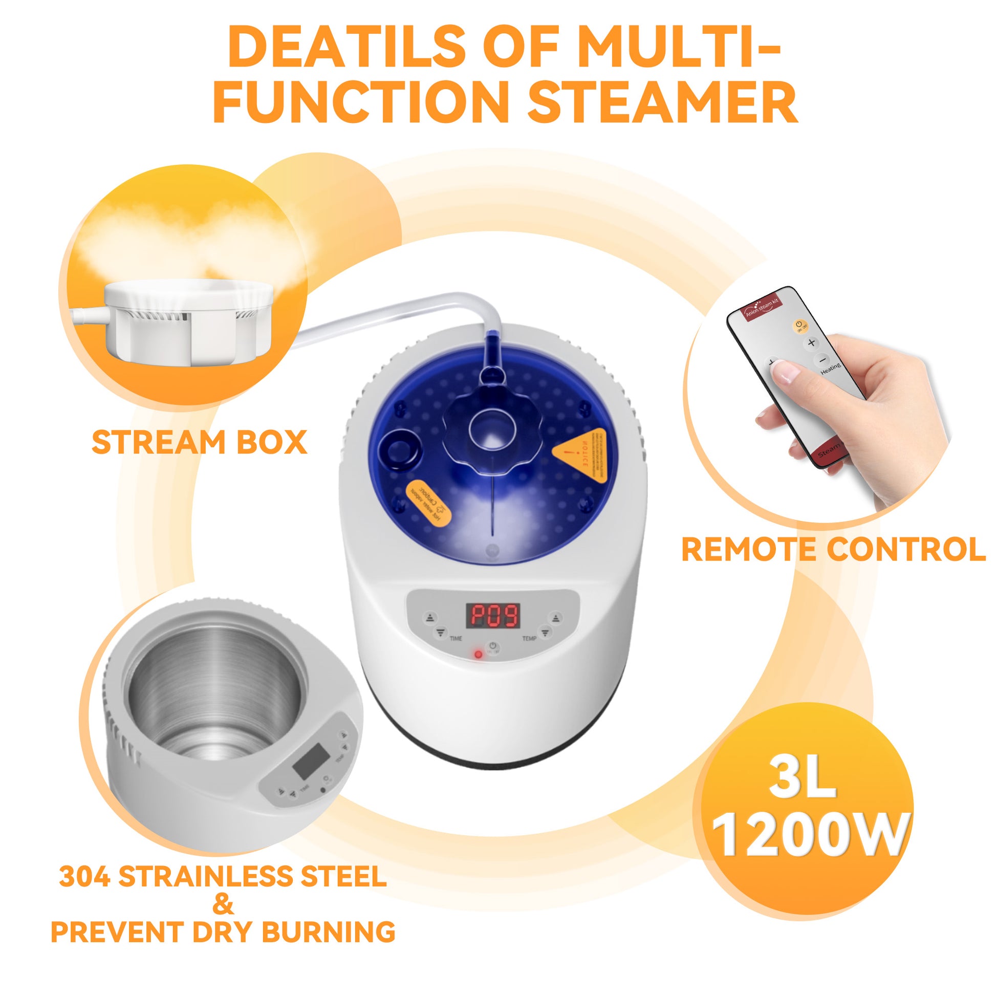 - ๐ค๐๐ถ๐ฐ๐ธ ๐๐ฒ๐ฎ๐๐ถ๐ป๐ด ๐ณ๐ผ๐ฟ ๐๐ป๐๐๐ฎ๐ป๐ ๐๐ผ๐บ๐ณ๐ผ๐ฟ๐: Bring the sauna experience to your home and enjoy rapid heating for immediate relaxation. This sauna box is uniquely designed with a 1200w steamer ,a water capacity of 3L and a total of 15 heating levels.It takes just 9 minutes to heat up to 130 ยฐF, ready to meet your relaxation needs