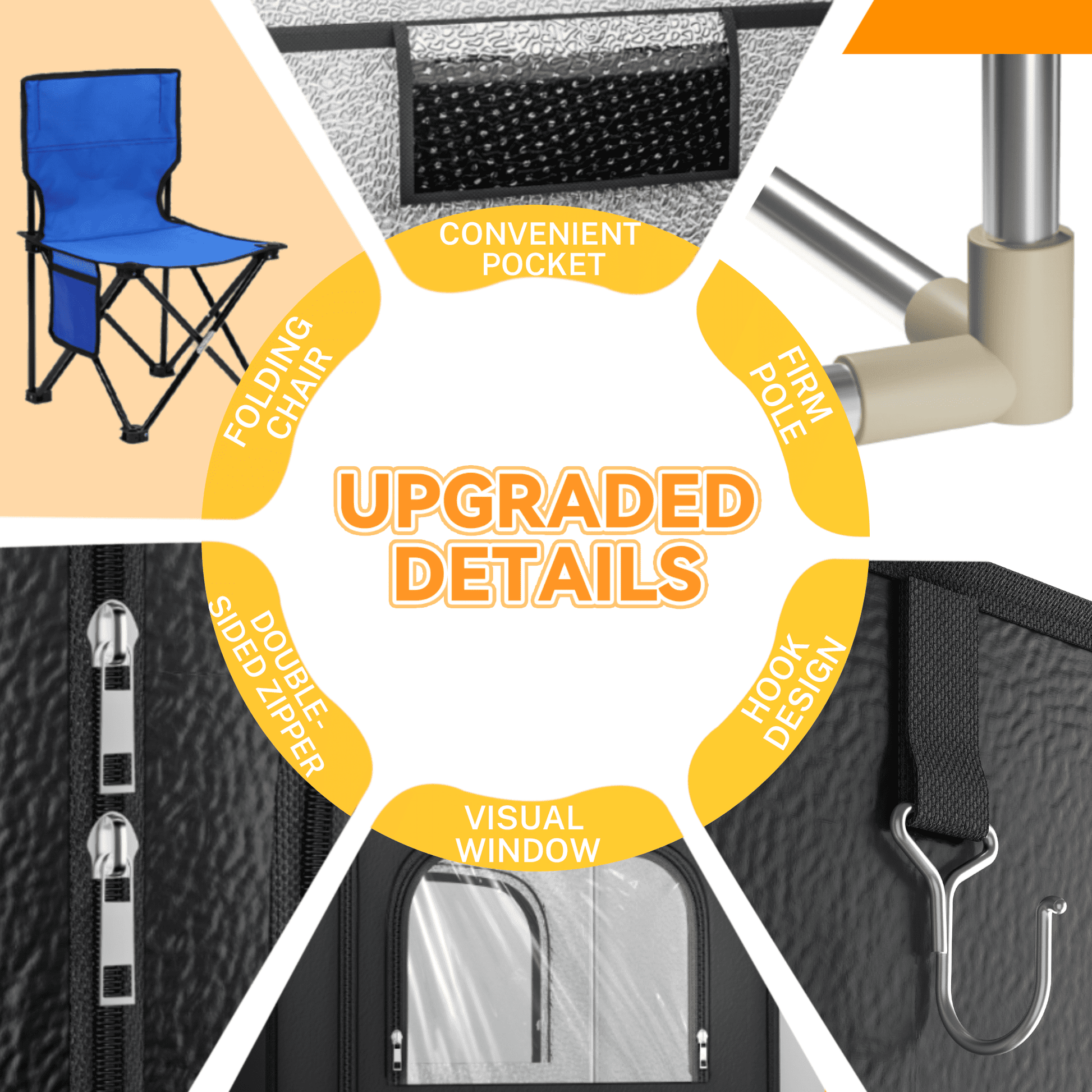 Our sauna room is made from durable, waterproof black Oxford fabric, paired with high-quality aluminum coating and high-insulation cotton, effectively trapping heat to deliver a powerful spa-like relaxation experience. You can adjust the comfort level to your preference with 15 adjustable temperature settings (104°F to 130°F), quick heating functionality, and a timer lasting up to 99 minutes. Sauna bathing can help relieve pain, promote detoxification, and revitalize your health and vitality. Suitable for bathrooms, living rooms, bedrooms, or gyms, safety features such as dry burn protection ensure you can enjoy a comfortable environment while relaxing, detoxifying, or supporting your weight loss journey. Transform any space into your own health retreat!