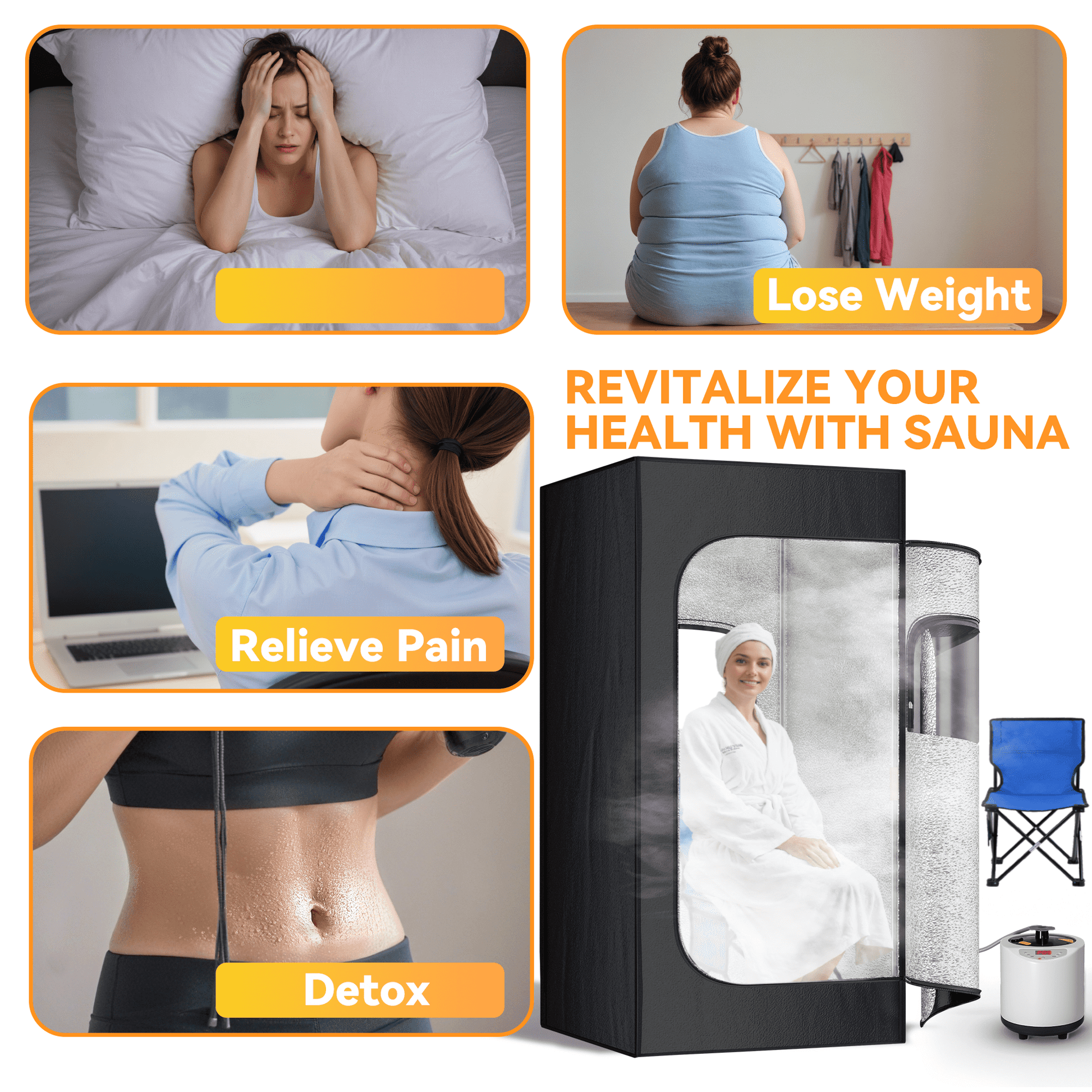 Portable Steam Sauna for Home with 3L 1200W Steamer, Remote Control, Folding Chair (Oxford cloth, waterproof)