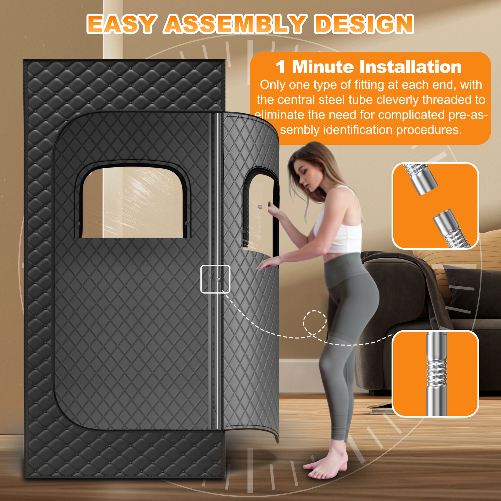 Sauna, Portable Sauna for Home, Sauna Box, Full Size Steam Sauna Tent with 3L 1200W Large Capacity Steamer and Remote Control, Ideal for Spa, Indoor, Outdoor (Satin Cotton, Black)