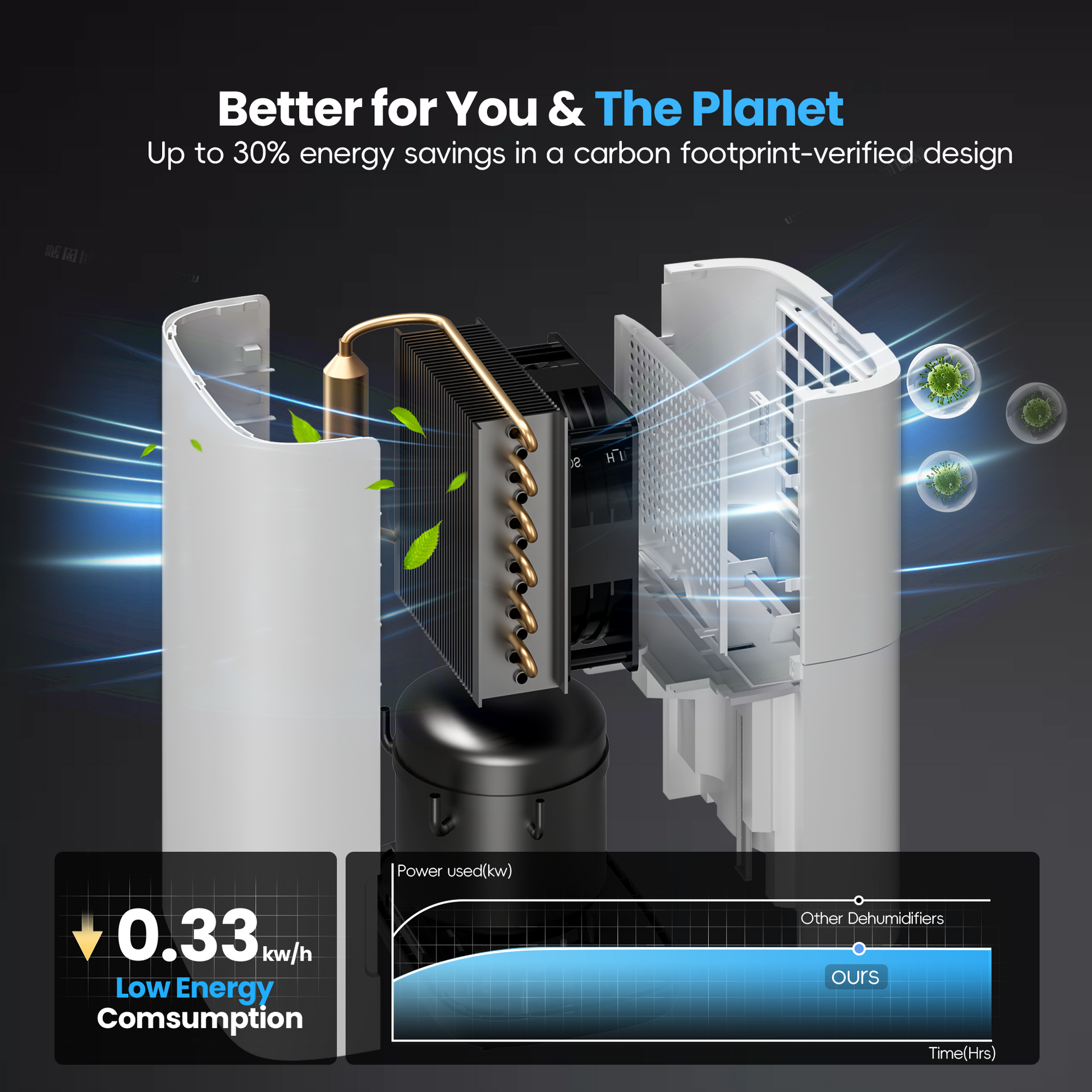 - 【Advanced Compressor Tech】 Our advanced compressor technology works hard while sipping energy—using just 0.33 kWh to keep your space dry! That’s less power than a lightbulb, saving you money while being gentle on our planet. Stay comfortable knowing you’ve chosen a greener, smarter way to fight humidity.