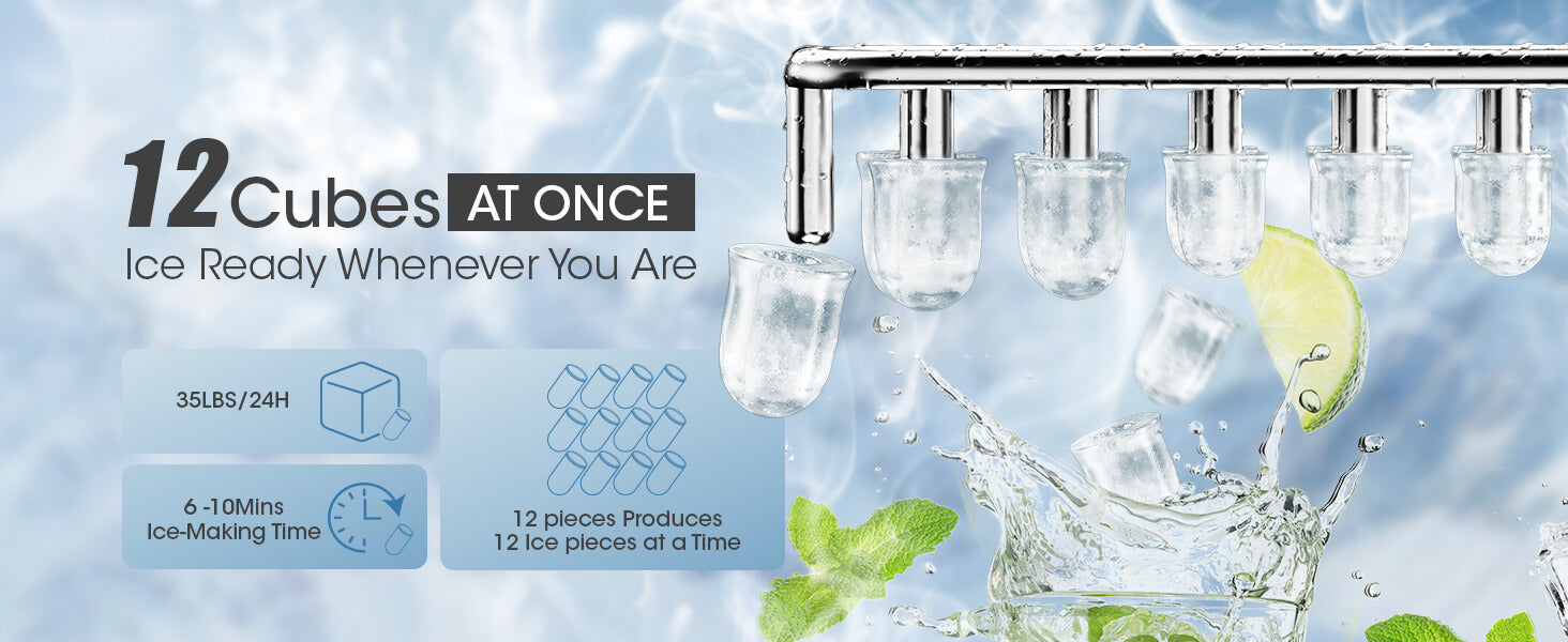 - Rapid Ice-Making Performance: Produces up to 12 clear ice cubes per batch in just 6-10 minutes for a constant supply.
